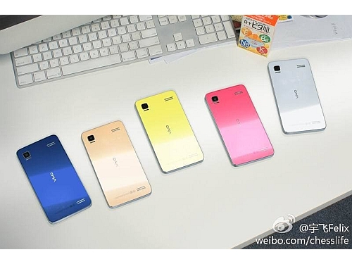 Wie auf dem Foto zu sehen, ist das Android-Handy Xplay 3S offenbar in den fünf Gehäusefarben blau, bronze, gelb, rosa und silber geplant. Die Gehäuse sind jeweils im Unibody-Design gehalten.