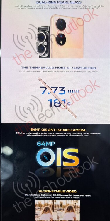 TheTechOutlook konnte schon vor dem Launch das unten eingebettete Promo-Material für das Vivo Y100 teilen. Demnach handelt es sich dabei um ein 7,7 Millimeter dünnes, 181 Gramm leichtes Mittelklasse-Smartphone, das auf ein modernes Design mit flachen Kanten und zwei kreisförmigen Kameramodulen setzt. Lediglich das große Kinn unter dem Display und die auffällige Notch zeigen, dass es sich bei diesem Gerät um ein eher günstiges Smartphone handelt.