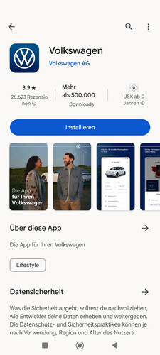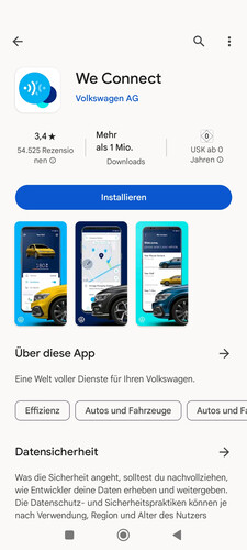 Die Volkswagen App kann im Google Play Store und im Apple App Store jeweils kostenlos heruntergeladen werden. Laut VW bietet die Handy-App die gleichen Funktionen wie die We-Connect-App, wie beispielsweise Statusinformationen zum Fahrzeug, Kraftstoffstand und Reichweite oder Informationen zu Fahrzeugservices und -angeboten.
