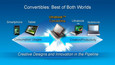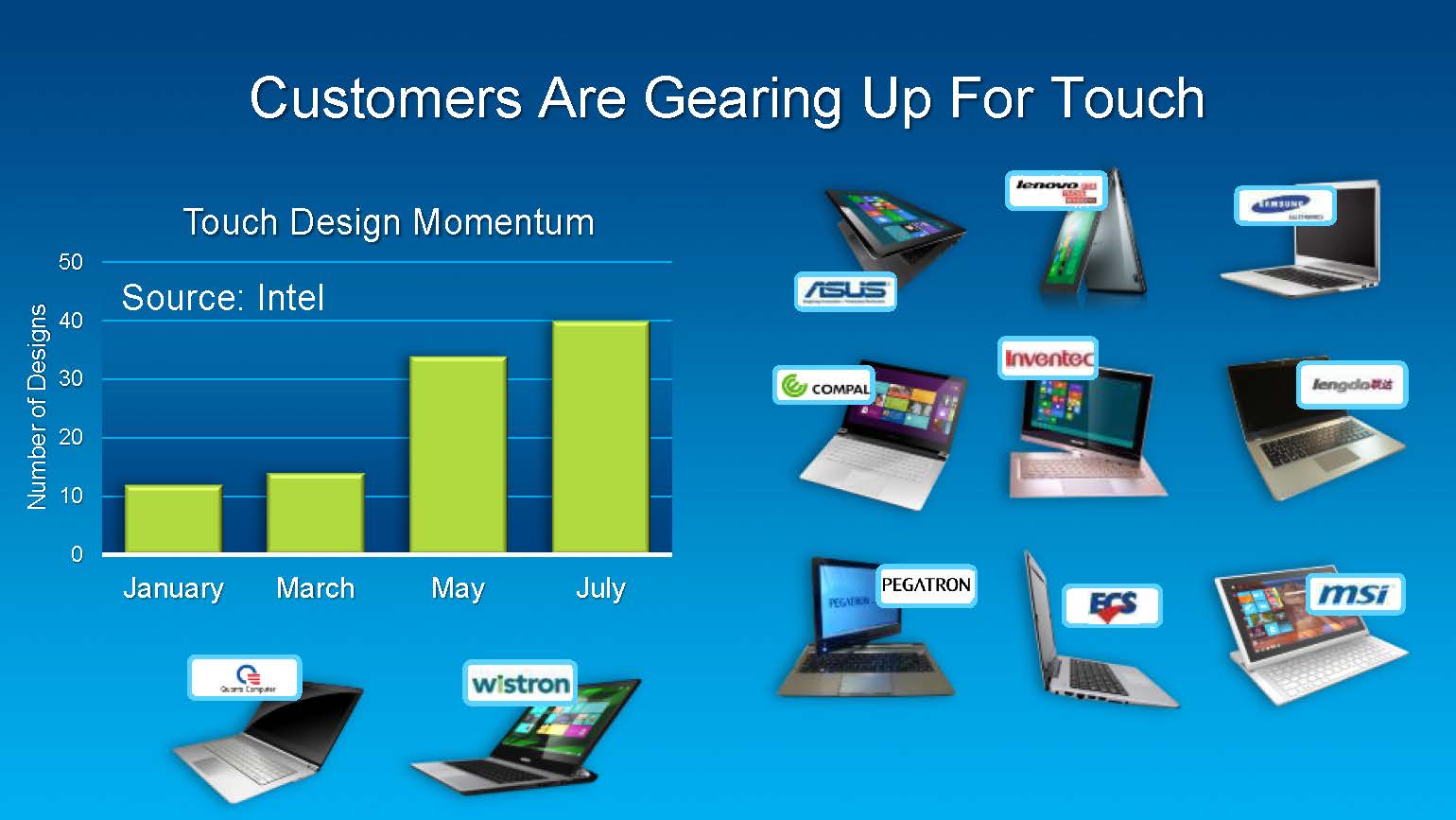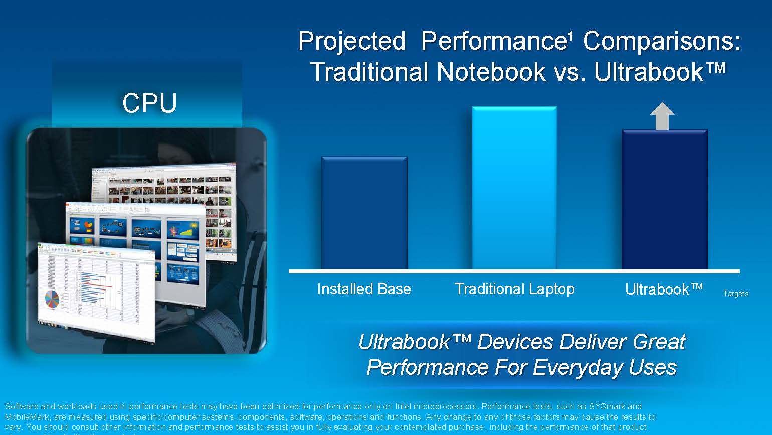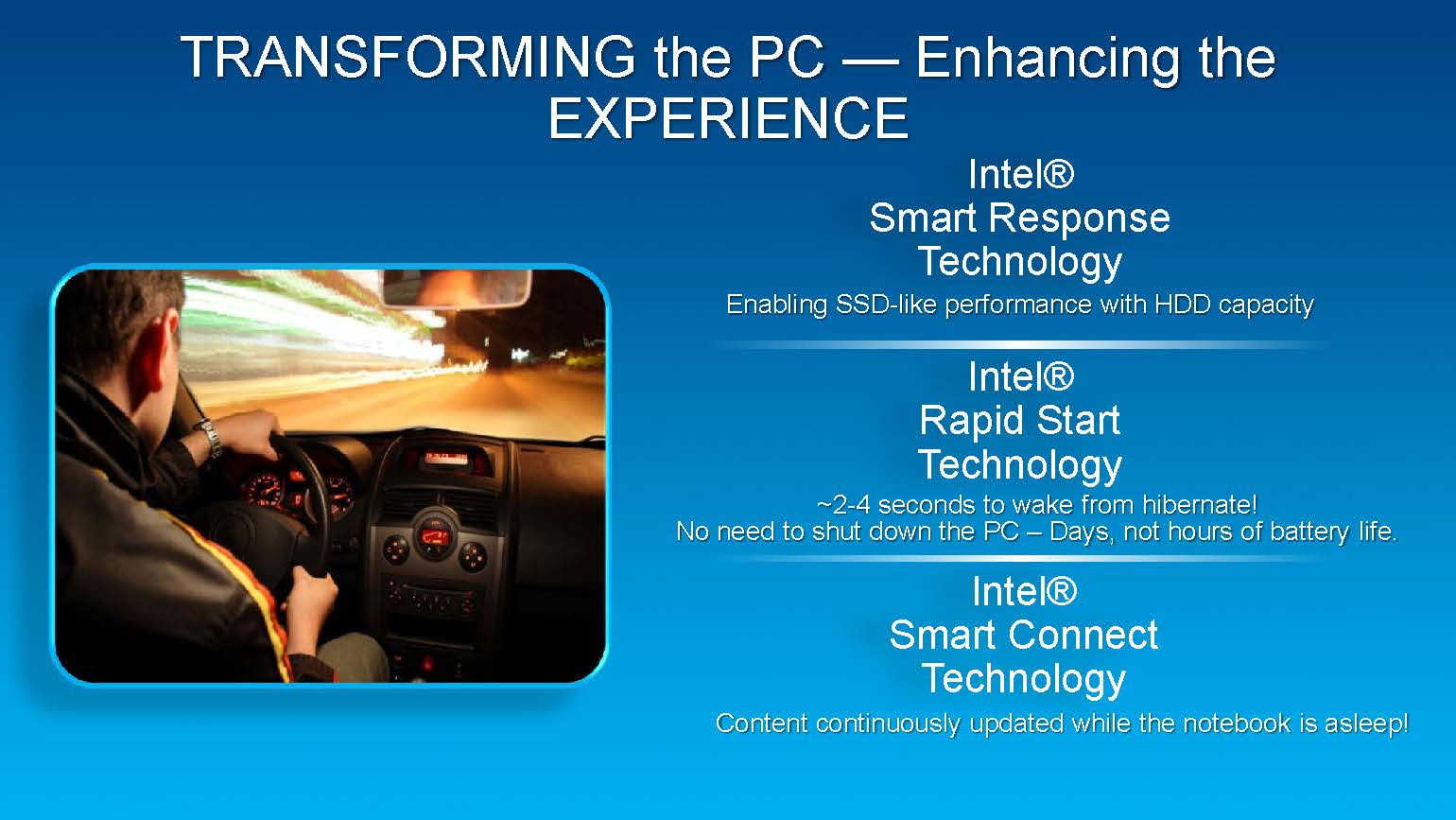 2013 steht bei Intel unter dem Slogan "The PC Re-invented", was so viel heißt, wie "der PC neu erfunden". Offenbar setzt Bhatt auch bereits Intels neue Vorgaben hinsichtlich der Vermeidung von Codenamen für seine künftigen Prozessoren um und spricht statt von "Haswell" nun von "4. Generation Intel Core Prozessor". Künftig sollen Ultrabooks als Hybrid oder Convertible die Brücke zwischen Smartphones und Tablets auf der einen Seite und Notebooks und Ultrabooks auf der anderen schlagen.