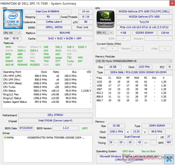 Wir empfehlen Ihnen, einen Blick auf unsere Testberichte der Geräte XPS 15 9550, 9560 und 9570 zu werfen, um weitere Informationen zum Gehäuse, den Anschlüssen, der Tastatur, den Lautsprechern und anderen physischen Features zu bekommen. Dell hat beim 7590 in diesen Bereichen keine großen Veränderungen gemacht. Unsere Testergebnisse und Eindrücke entsprechen dieser Konfiguration des 7590 mit den unten angeführten Treiberversionen (siehe Screenshot).