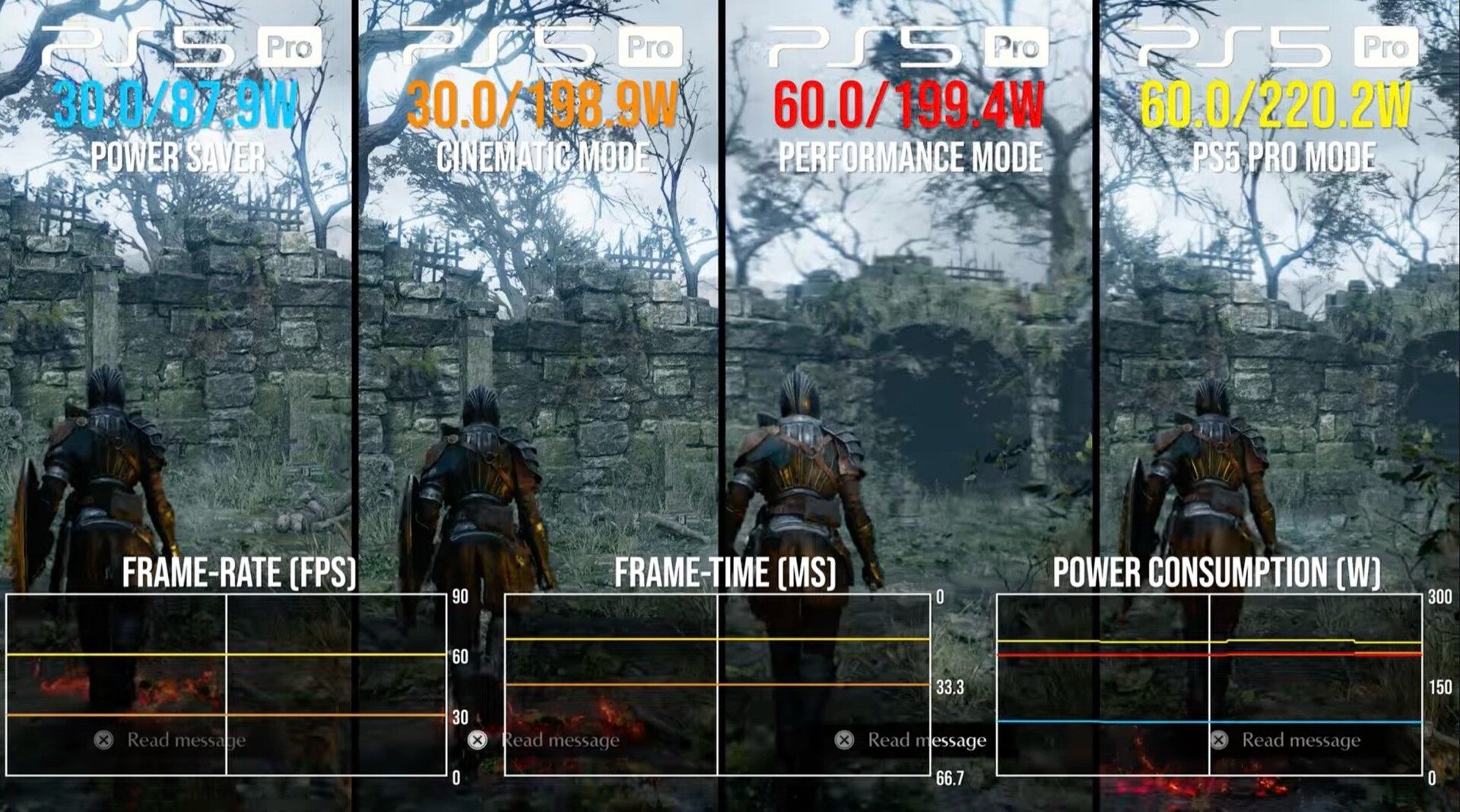 Wie die Analyse von Digital Foundry zeigt, wirkt sich der Energiesparmodus drastisch auf die Grafik-Qualität aus. Während Demon's Souls regulär in 4K-Auflösung mit 30 Bildern pro Sekunde oder in 1.440p mit 60 fps dargestellt wird, ist das Spiel im Stromsparmodus auf 1.440p-Auflösung und 30 Bilder pro Sekunde beschränkt, die Grafikeinstellungen bleiben unverändert – die Leistung wird also effektiv halbiert. Der Stromverbrauch sinkt von knapp über 200 Watt auf rund 90 Watt.