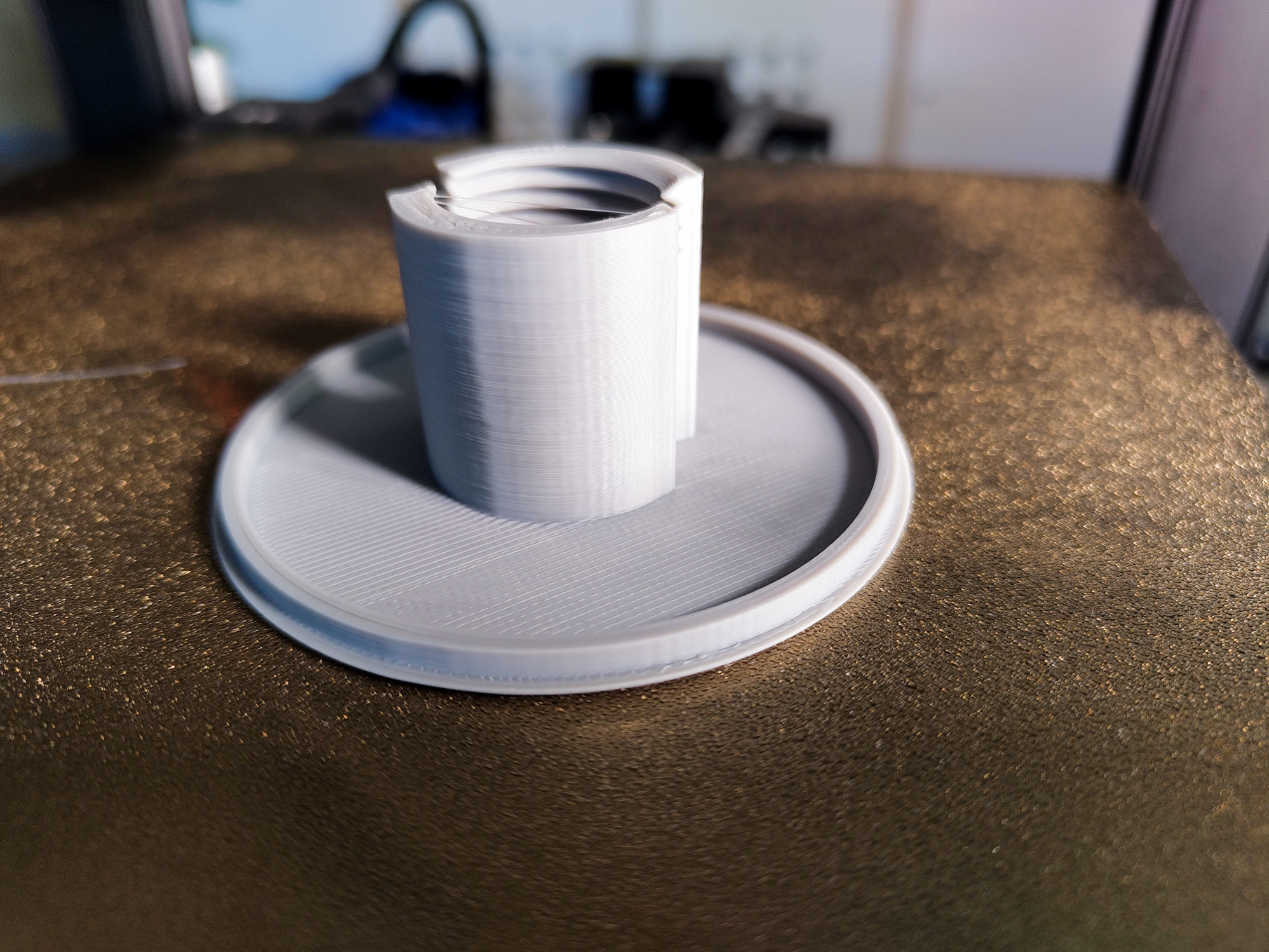 Zwischen den einzelnen Schichten ist ein gewisses Kräuseln zu sehen. Wir vermuten hier Z-Banding, welches durch eine unsaubere Führung der Z-Achse ausgelöst werden kann.
