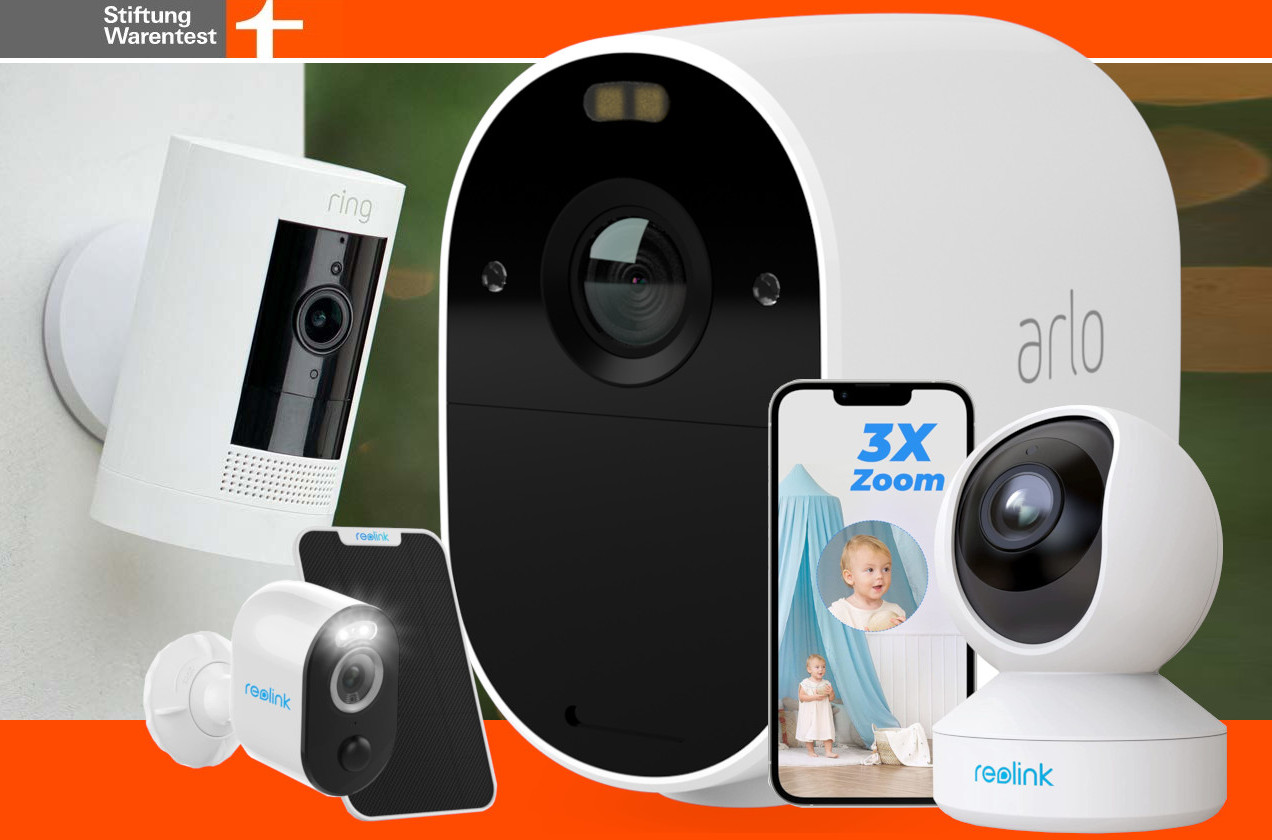 Den Testsieg bei den Überwachungskameras für den Innenbereich holt sich die Arlo Essential (bei Amazon für 109 Euro) mit der Note "Gut" (2,1). Die Arlo Essential gefällt im Warentest vor allem mit einer sehr guten Handhabung und kann Menschen, Tiere und Fahrzeuge (im geschützten Außenbereich) erkennen. Obendrein lässt sich die Arlo Essential über Geräusche auslösen. Platz 2 bei den Überwachungskameras für Innenräume holt sich die Reolink E1 Zoom (bei Amazon für 89,99 Euro) mit "Gut" (2,2), die verglichen mit der Arlo eine bessere Kamerafunktion, Schwenk-, Neige- und Zoom-Funktion, 5-GHz-WLAN und die Speicherung auf microSD anbietet.