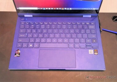Ungewöhnlich für einen Laptop ist die Wireless Power-Share-Funktion im Touchpad an der Front: Auch mein Huawei Phone konnte darüber Strom beziehen, musste allerdings sehr präzise platziert werden. Vom Gewicht her ist das Samsung-Convertible mit 1,16 kg in etwa so leicht wie das LG-Pendent LG Gram 2-in-1, das allerdings ein 14 Zoll-Panel besitzt, Samsung setzt zur Gewichtsreduktion auf ein Chassis aus Magnesium, der Akku fasst knapp 70 Wh.