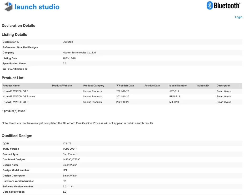 Hinweise auf die neue Smartwatch wurden bei der Bluetooth SIG gesichtet. Dort ist das Modell neben der hierzulande mittlerweile veröffentlichten Smartwatch Huawei Watch GT 3, die es in zwei verschiedenen Varianten gibt, mit der Modellnummer RUN-B19 gelistet. Dem Namen nach dürfte es sich also um eine spezielle Version der Watch GT Reihe handeln, die für Läufer bzw. Sportler allgemein ausgelegt ist. Dies könnte sich durch weitere Gesundheitsfeatures und Messwerte zeigen, aber auch durch noch mehr Sportmodi. Wobei auch schon die aktuelle Watch GT 3 mit über 100 Trainingsmodi hier sehr viel zu bieten hat.
