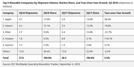 Angetrieben wurde das deutliche Marktwachstum bei den Wearables im zweiten Quartal 2018 laut den Marktforschern von IDC vor allem durch die anhaltend hohe Beliebtheit von Smartwatches der höheren Preisklassen wie der Apple Watch. Aus regionaler Sicht verzeichneten die reifen Märkte wie Nordamerika, Japan und Westeuropa im Jahresvergleich allerdings eine Rückgang um 6,3 %. Das liege hauptsächlich daran, dass in diesen Regionen vor allem der Absatz für einfache Fitnessarmbänder im Vergleich zum Vorjahr deutlich eingebrochen ist.