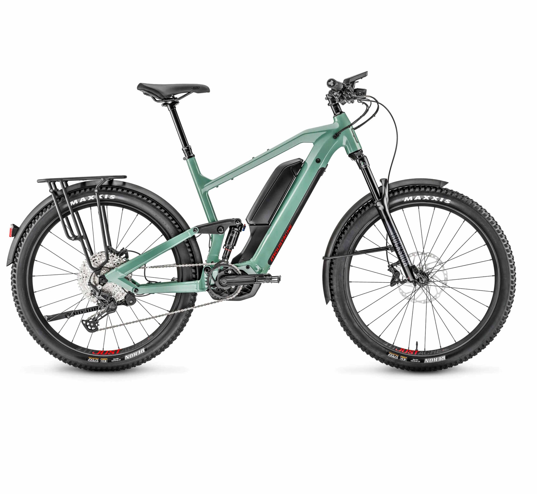 Verbaut ist eine RockShox 35 Gold RL-Federgabel mit einem 130 Millimeter langen Federweg. Der Dämpfer bietet einen Federweg von 120 Millimetern. Es sind Rekon-Reifen von Maxxis aufgezogen, womit sich das Fahrrad auch für den Einsatz im Gelände eignen dürfte. Allerdings: Verbaut sind auch Schutzbleche, eine starke Beleuchtung und ein Seitenständer, wodurch sich auch im Alltag ein hoher Nutzwert ergeben dürfte. Der Aluminium-Gepäckträger ist zum MIK HD-System und zu QL3 kompatibel.