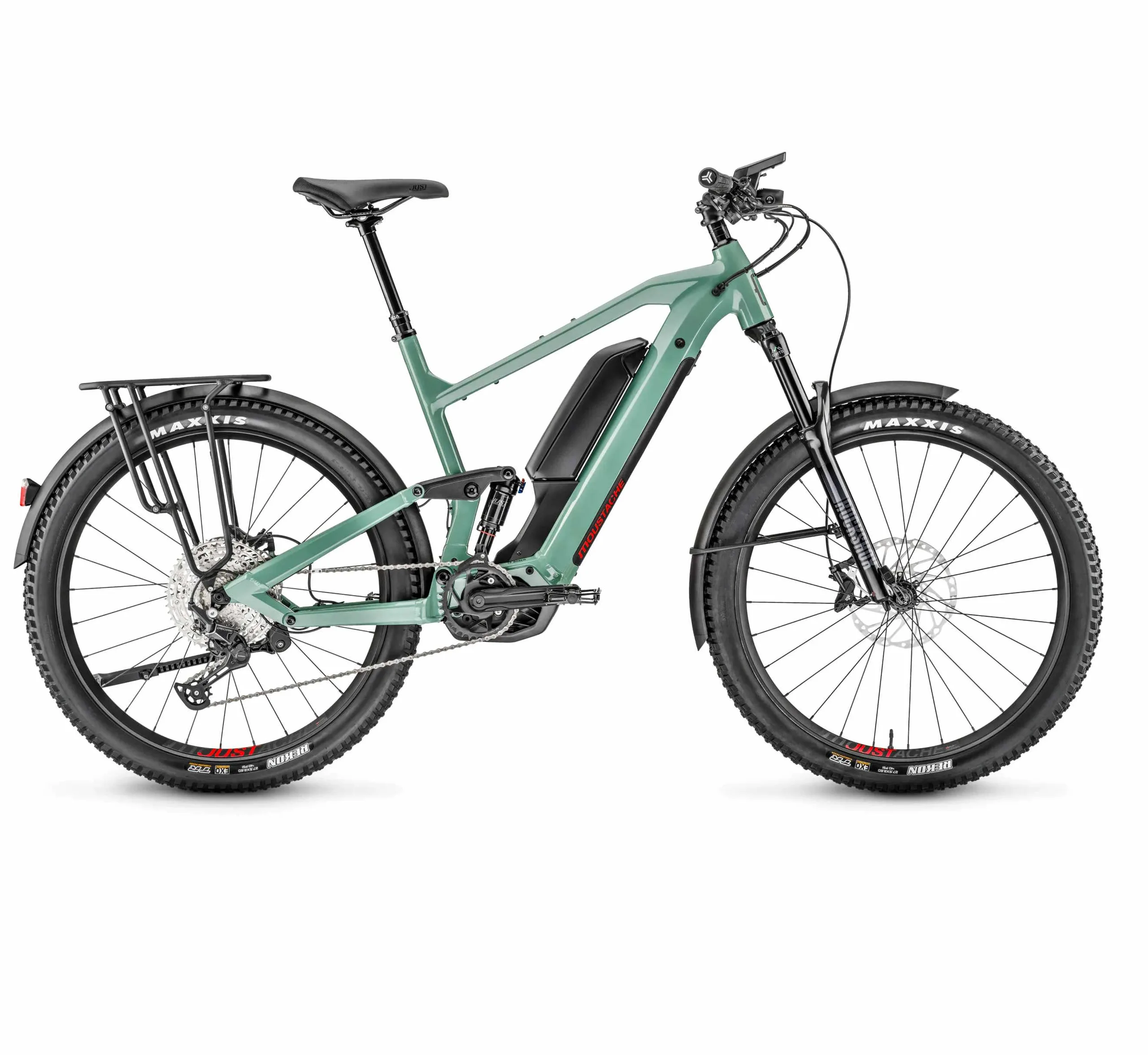 Es ist eine Shimano Deore RD-M6100-SGS-Schaltung mit 12 Gängen verbaut. Eine starke Verzögerung versprechen die jeweils mit vier Bremskolben ausgestatteten Shimano BR-M6120-Scheibenbremsen. Das zulässige Gesamtgewicht wird auf 150 Kilogramm beziffert, wodurch auch schwerere Fahrer durchaus noch einiges an Gepäck mitnehmen dürften.
