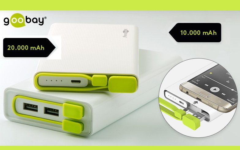 Wentronic erweitert sein Goobay-Portfolio um zwei neue leistungsstarke Powerbanks. Die beiden neuen mobilen Ladestationen mit den Modellbezeichnungen PowerBank 10.0 (Artikel-Nr.: 71225) und PowerBank 20.0 (Artikel-Nr.: 72204) versorgen jedes Smartphone und Tablet mit einer extra Portion Strom, ohne dabei mehrere Stunden an der Steckdose hängen zu müssen.