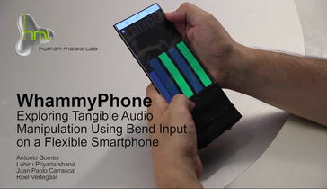 Nach PaperWindows, BendFlip, PaperPhone, PaperTab und ReFlex ist WhammyPhone der neueste Streich der Tüftler des Human Media Lab (HML). Das ambitionierte Forschungslabor widmet sich seit mehr als 15 Jahren der Enwicklung neuartiger Interaktionsmethoden zwischen Mensch und Maschine. Spezielle Eye-Tracking Features des Samsung Galaxy S4 (u.a. Smart Scroll, Smart Pause) haben dort ihren Ursprung. Der Name des Prototpys leitet sich ab aus der englischen Bezeichnung für das Tremolo (Whammy Bar), einer Vorrichtung für Gitarren zur Manipulation der Tonhöhe mittels Betätigung eines Hebels.