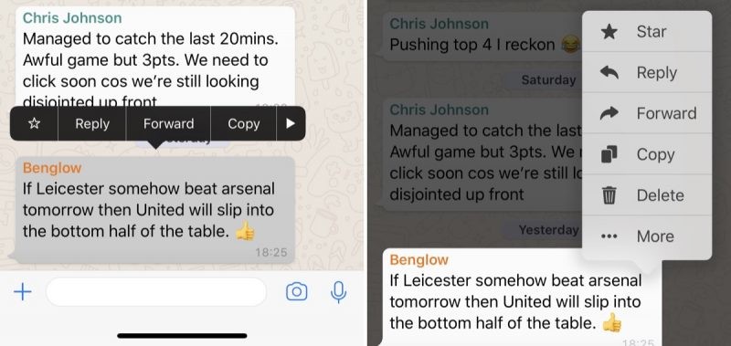 Bis zur letzten Version wurde die App auf Apples bisher größtem Smartphone-Display, dem 6,5 Zoll, 2.688 x 1.242 Pixel auflösendem iPhone XS Max nicht richtig skaliert. Dieses Problem wurde mit dem neuen Update behoben. Dazu gibt es ein komplett neu gestaltetes Aktionsmenü, welches sich nach wie vor erreichen lässt, indem man eine Nachricht gedrückt hält.