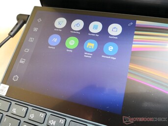 Der größte Nachteil des sekundären Displays ist, dass man es fast immer aus einem größeren Blickwinkel betrachtet als das Hauptdisplay. Beim Betrachten von sehr großen Blickwinkeln kann sich die Wahrnehmung der Farben, des Kontrasts und der Helligkeit eines IPS-Displays verändern und das ist auch beim ScreenPad der Fall. Dadurch wirkt der Bildschirminhalt auf dem zweiten Display tendenziell etwas dunkler und Farben weniger kräftig als auf dem Hauptdisplay. Zusammen mit der schwächeren Farbdarstellung und stärkeren Reflexionen ist das ScreenPad eher für die Multimediasteuerung und große Textpassagen geeignet als für die Videowiedergabe oder professionelle Bild- und Videobearbeitung.
