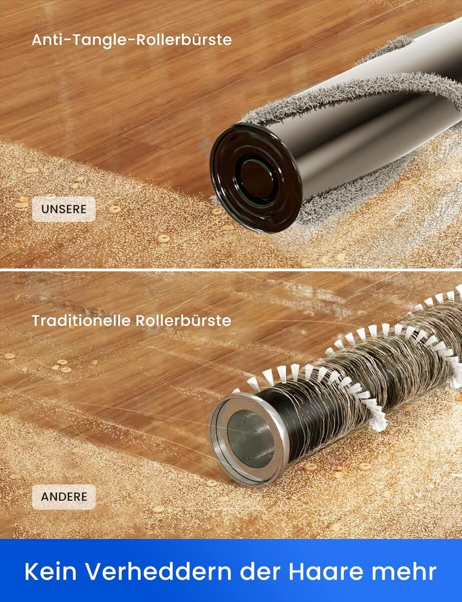 Der Proscenic P12 weist 33 kPa bzw. 120 AW Saugkraft und eine Anti-Tangle-Rollenbürste, die das Umwickeln von Haaren verhindern soll, auf. Zur weiteren Ausstattung des Akku-Staubsaugers zählen unter anderem ein fünfstufiges Filtersystem und ein All-in-One-Display, das über wichtige Informationen wie den Batteriestand und den Saugmodus informiert. Die Akkulaufzeit gibt der Hersteller mit bis zu 60 Minuten im leisen und bis zu 13 Minuten im maximalen Modus an. Den Lieferumfang runden allerhand Düsen und weiteres Zubehör ab.