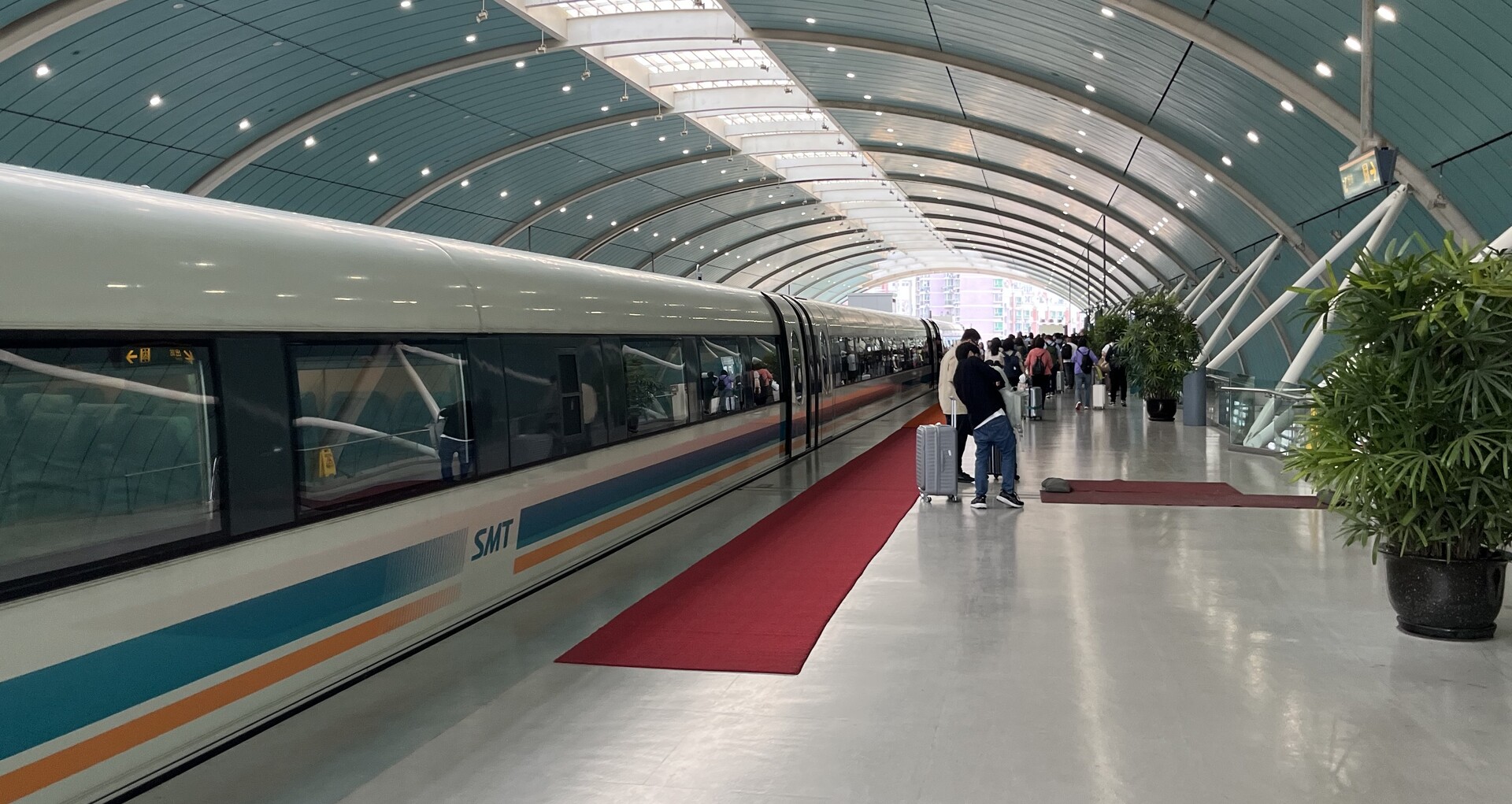 Die hohe Auslastung bei unserer Fahrt gegen 17 Uhr erstaunt ein wenig. Das Terminal war nicht besonders voll zu dieser Zeit. Außerdem, hat der Transrapid mittlerweile eine leistungsfähige Konkurrenz bekommen. Der Shiyu Airport Link verbindet seit Ende 2024 den Shanghai Pudong Airport mit dem Shanghai Hongqiao Airport und deckt zusätzlich den südlichen Bereich der Metropolregion ab.