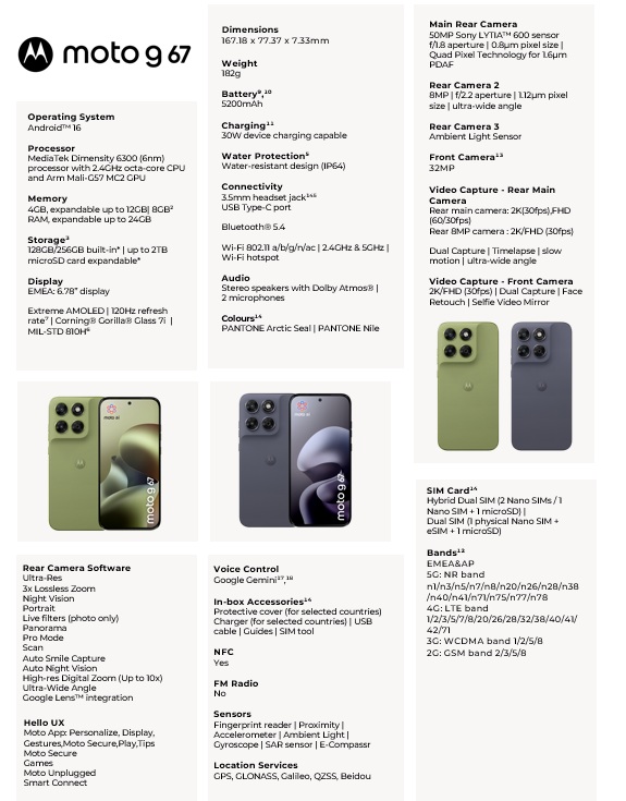 Verfügbarkeit und Preis des Moto G67