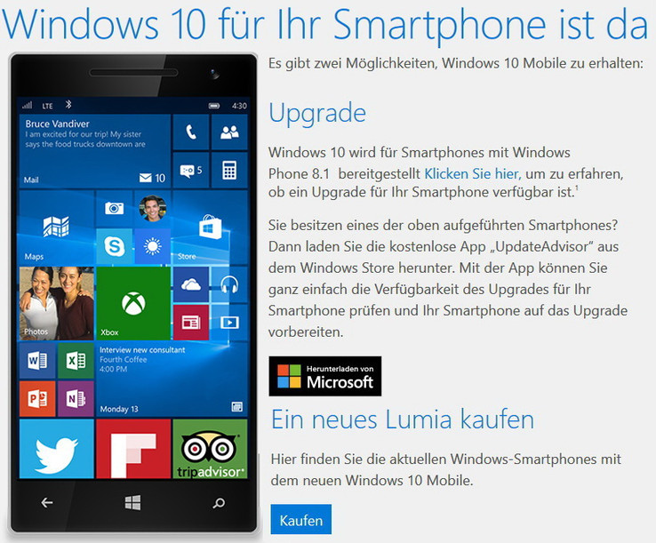 Ursprünglich hatte Microsoft angekündigt zu versuchen, dass alle Lumia-Smartphones, die mit Windows Phone 8.1 laufen, auch ein Upgrade auf Windows 10 Mobile erhalten werden. Wie allerdings nüchtern betrachtet zu erwarten war, musste Microsoft dann in diesem Punkt später doch zurückrudern und die Liste der upgradefähigen Lumia Smartphones reduzieren. Offenbar sind einige ältere Lumia-Smartphones mit dem Update auf das einheitliche und plattformübergreifende Windows 10 Mobile überfordert.