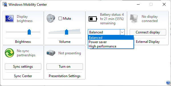 Damit muss man sogar ausgesprochen vorsichtig sein. Das betrifft die Akkueinstellungen des Mobility Centers. Wer von der Standardeinstellung dort abweicht, kann anschließend in den Systemeinstellungen den Power Mode nicht mehr ändern. Windows unterscheidet zwischen Power Plan (Mobilty Center und Systemsteuerungen) und Power Mode (Systemeinstellungen).