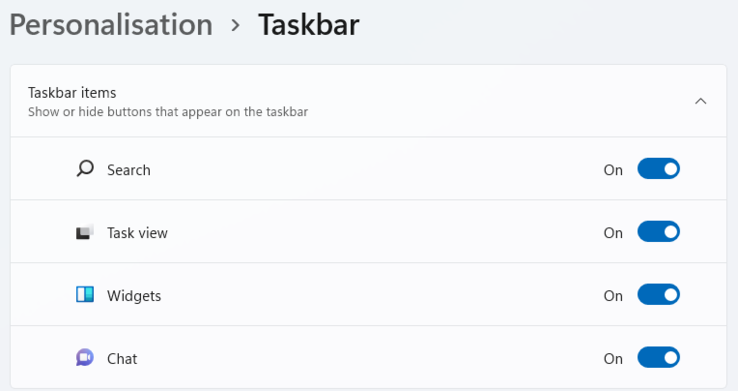 Teams oder Chat lässt sich übrigens nicht entfernen. Es gibt stattdessen in den Systemeinstellungen unter Personalisierung die Möglichkeit Teams als Icon in der Taskleiste zu deaktivieren. Dort können auch die Widgets und Task View für virtuelle Desktops als Icon deaktiviert werden. Das zeigt, wie wichtig Microsoft die Teams-Integration in Windows ist.
