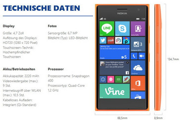 Technische Daten und Spezifikationen Microsoft Lumia 730 Dual-SIM und Lumia 735