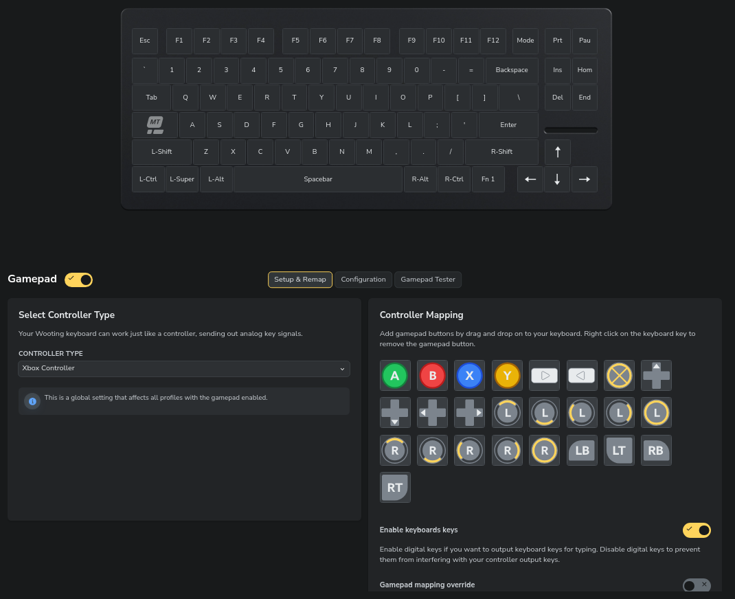 Analoge Eingabe und Controller-Zuordnung: Mit dieser Funktion können Sie die Tastatur praktisch als Controller einrichten.