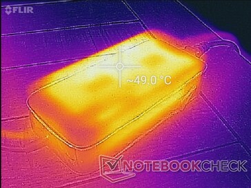 (-) Auf der Unterseite messen wir eine maximalen Wert von 46.2 °C (im Vergleich zum Durchschnitt von 41.1 °C).
