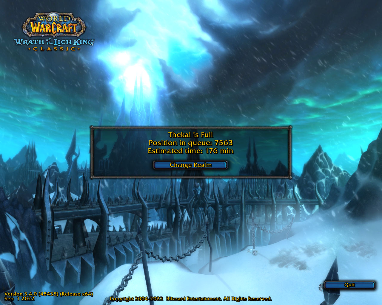 Es kam auf einigen Classic-Servern im Zuge des Ansturm auf Wrath of the Lich King Classic sowohl in Deutschland als auch in den USA zu sehr langen Wartezeiten mit Queues von mehreren Tausend Spielern. Wie ein WotLK-Classic-Spieler in den US-Foren berichtet: "Ich habe mich um 4pm PST in die Warteschlange eingereiht, dann bin ich schlafen gegangen und habe bis gerade eben geschlafen, und es werden immer noch 2 Stunden in der Warteschlange angezeigt."