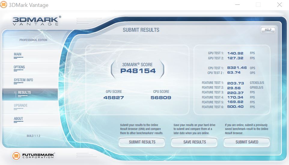 | 3DMark Vantage P Result | 48454 Punkte | |