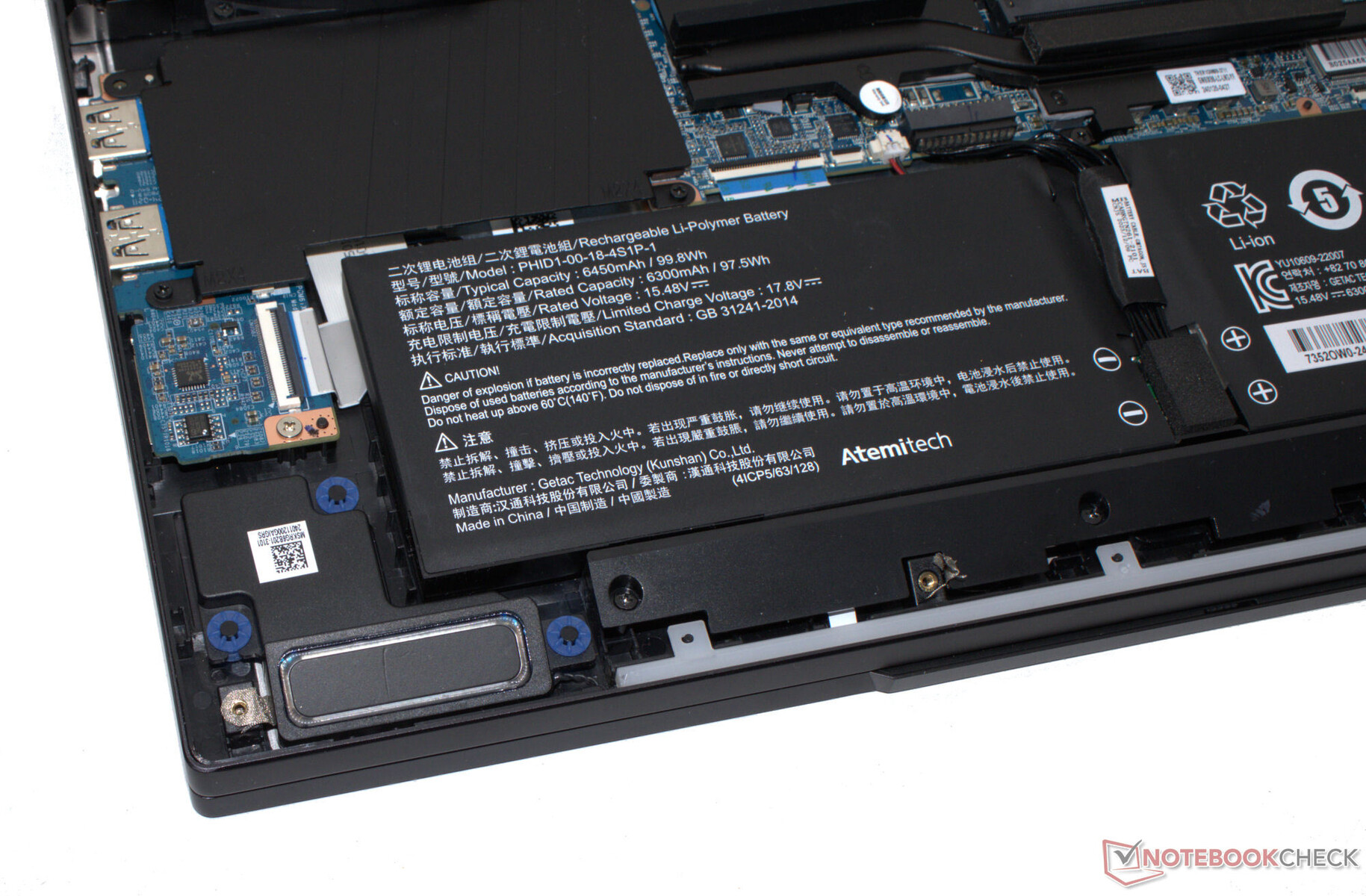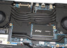 Nach Entfernung aller Schrauben auf der Geräteunterseite kann die Unterschale mittels eines Plektrums oder eines flachen Spatels abgelöst werden. Es besteht dann Zugriff auf die Arbeitsspeicherbänke (beide belegt), die Lüfter und den Akku. Die SSD bzw. die SSD-Slots (PCIe 4, M.2-2280) und das WLAN-Modul werden zusätzlich von verschraubten Schilden abgedeckt.