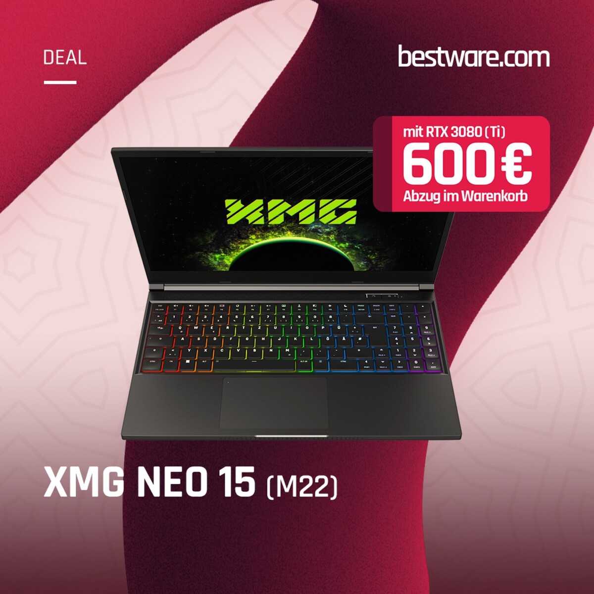 Das XMG Neo 15 (E21) mit AMD Ryzen 9 5900HX, GeForce RTX 3080 Laptop-GPU mit 16 GB GDDR6-Grafikspeicher, 165 Hz QHD-Display, 16 GB RAM und 500 GB SSD kostet durch diesen Rabatt nur 1.799 Euro statt der üblichen 2.399 Euro. Das neuere XMG Neo 15 (M22) mit dem Ryzen 9 6900HX, einem 240 Hz schnellen QHD-Display und derselben GPU- und Speicher-Ausstattung ist dagegen für 2.390 Euro zu bekommen.