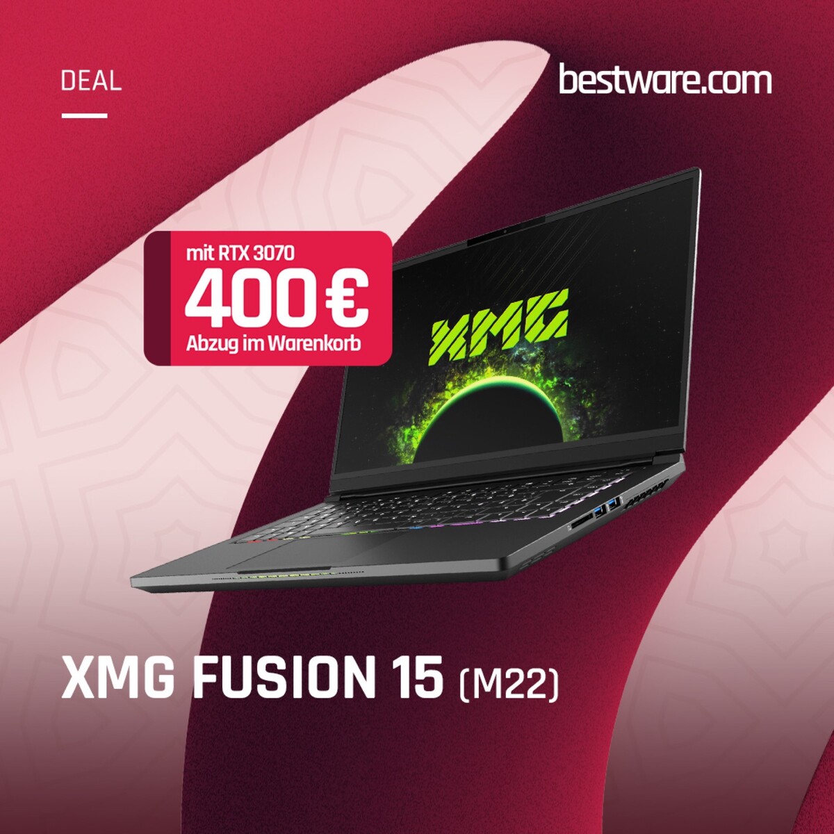Auf das XMG Pro 15 (L21) und das XMG Fusion 15 (M22) gewährt Bestware jeweils 400 Euro Rabatt, solange die Geräte mit einer GeForce RTX 3070 Laptop-GPU konfiguriert werden. Damit kosten diese Modelle mindestens 1.779 Euro respektive 1.484 Euro, jeweils mit 16 GB RAM, einer 500 GB SSD und einem Intel Core i7-11800H. Wie üblich erlaubt es Bestware, die Speicher-Ausstattung der Laptops beim Bestellvorgang aufzurüsten.