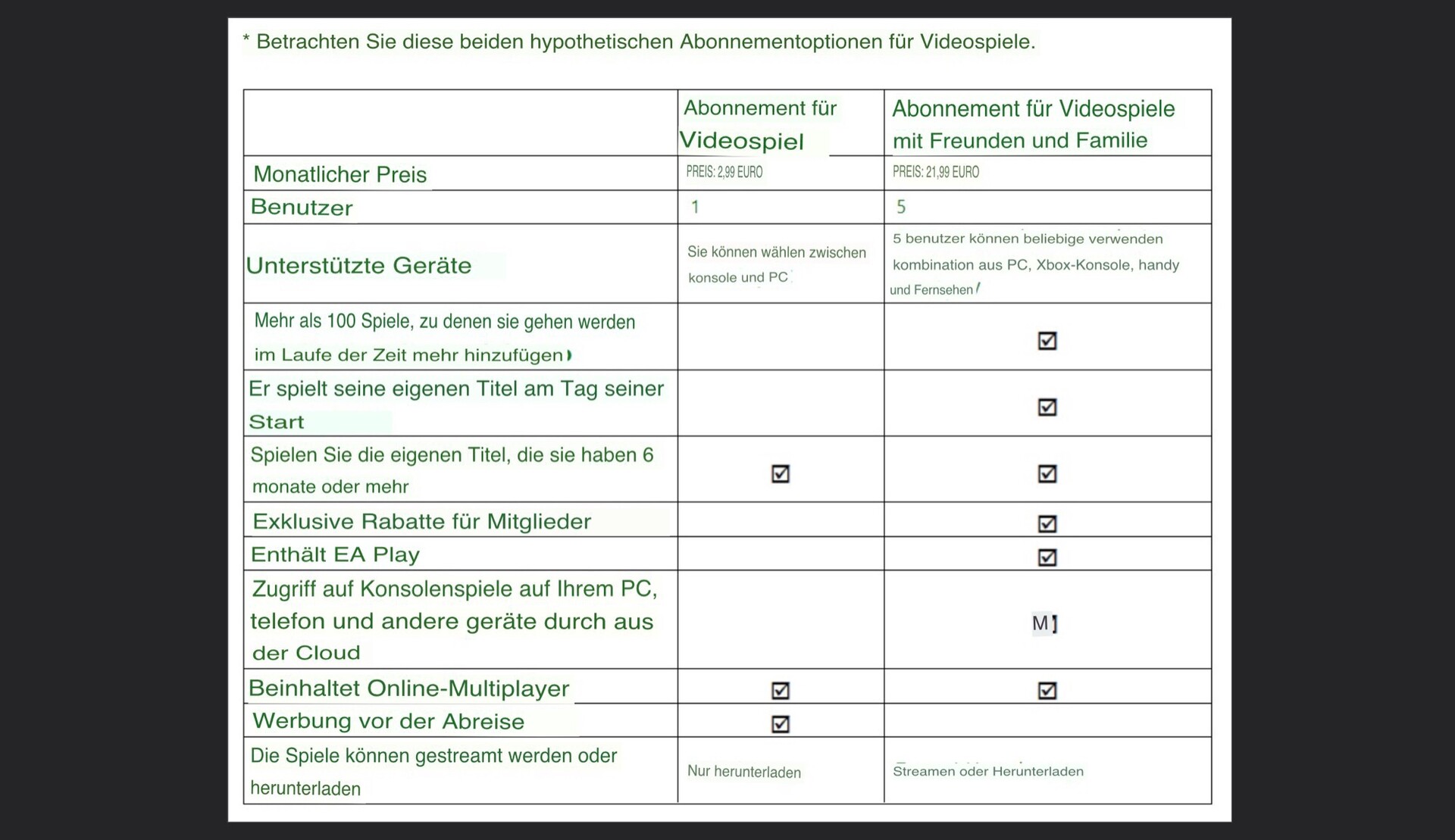 Die Umfrage nennt auch Details zu einem hypothetischen Familien-Abonnement für 21,99 Euro pro Monat, das von fünf Nutzern zeitgleich genutzt werden kann, wahlweise auf der Konsole, am PC, oder per Xbox Game Streaming auch am Smartphone oder am kompatiblen Smart TV. Abgesehen davon, dass bis zu fünf Nutzer zeitgleich Zugriff auf das Abo haben, ist der Inhalt identisch mit dem Game Pass Ultimate. Derzeit ist unklar, ob oder wann Microsoft neue Xbox-Abonnements einführen wird, der Konzern denkt aber in jedem Fall über neue Möglichkeiten nach, das Abo für noch mehr Kunden attraktiv zu gestalten.