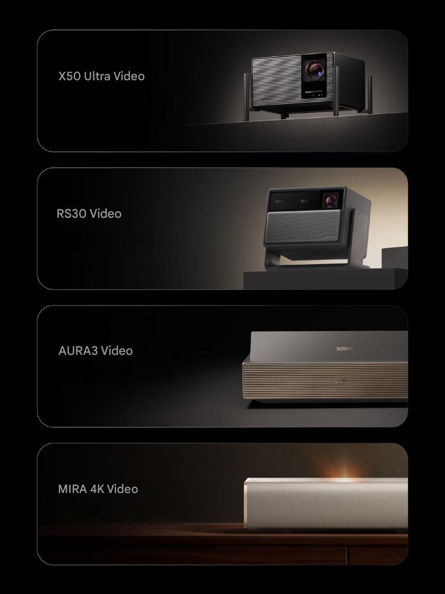 Xgimis neue Laser-TVs sind die Aura3-Serie und der Mira 4K. Ersterer wird von der Marke als Laser-TV in Kinoqualität für das Heimkino mit Features zur Schonung der Augen vermarktet. Der Mira 4K wird hingegen als Art Laser-TV beschrieben und bietet ähnliche Funktionen zum Schutz der Augen.