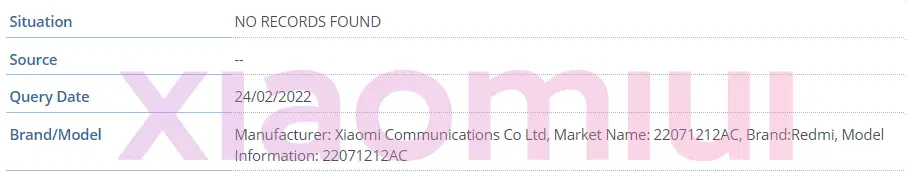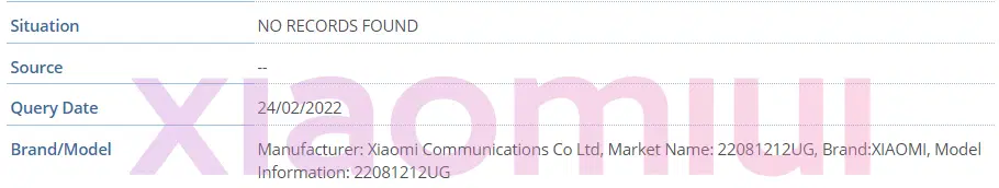 Laut der Quelle versteckt sich hinter der Modellnummer 22071212AG in der IMEI Datenbank das Xiaomi 12T. Die Nummer 22081212G soll für das Xiaomi 12T Pro stehen, die 22081212UG für das Xiaomi 12T Pro HyperCharge mit noch höherer Ladegeschwindigkeit. Dazu wird der Eintrag mit der Modellnummer 22071212AC dem Redmi K50 Ultra und die 22081212C dem Redmi K50S Ultra zugeordnet.