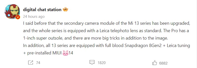 2022 beziehungsweise Anfang 2023 für die globalen Xiaomi 13 Modelle, markiert offenbar auch das Ende für die meist eher ungeliebte 5 Megapixel Macro-Cam im kleinsten Xiaomi-Flaggschiff. Laut Digital Chat Station wird nicht nur die Hauptkamera des Xiaomi 13 mit einem neuen 50 Megapixel-Sensor bestückt, auch die Macro-Cam wird durch eine vollwertige Telefoto-Kamera ersetzt, womit erstmals alle Xiaomi 13-Modelle zumindest 2x-Zoom bieten sollten. Neben dem Snapdragon 8 Gen 2 teilen sich alle Xiaomi 13 Varianten auch das Leica Kamera-Tuning sowie das vorinstallierte MIUI 14 auf Android 13-Basis.