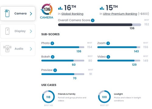 Die Tester von Dxomark bewerteten ebenfalls die Audio-Qualitäten des Xiaomi 13 Pro. Im Dxomark Audi holte sich das Xiaomi-Flaggschiff 13 Pro mit einem Score von 140 Punkten den neunten Platz im Ultra-Premium-Ranking und teilt diese Position fortan mit dem Apple iPhone 12 Pro Max. Im Global Ranking des Audio-Benchmarks reicht es für das Xiaomi 13 Pro jedoch nur für Platz 15, zusammen mit Apple iPhone 12 und iPhone 12 Pro Max.