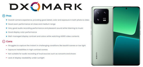Überrascht waren die Tester, dass das Honor-Handy selbst bei schwachem Licht ein besseres Verhältnis zwischen Textur und Rauschen zeigt. Angesichts des kleineren Sensors des Magic5 Pro und der fehlenden optischen Bildstabilisierung war dies für die Kameratester ein unerwartetes Ergebnis. Bei den umfangreichen Kameratests stellt Dxomark beim Xiaomi 13 Pro einige Belichtungsinstabilitäten und Tonwertkompression in kontrastreichen Szenen, Autofokus-Fehler sowie Halo-Artefakte in Fotos und recht "lange" Verzögerungen zwischen Auslösen und Bildaufnahme fest. Dies insbesondere bei hohen Kontrasten.