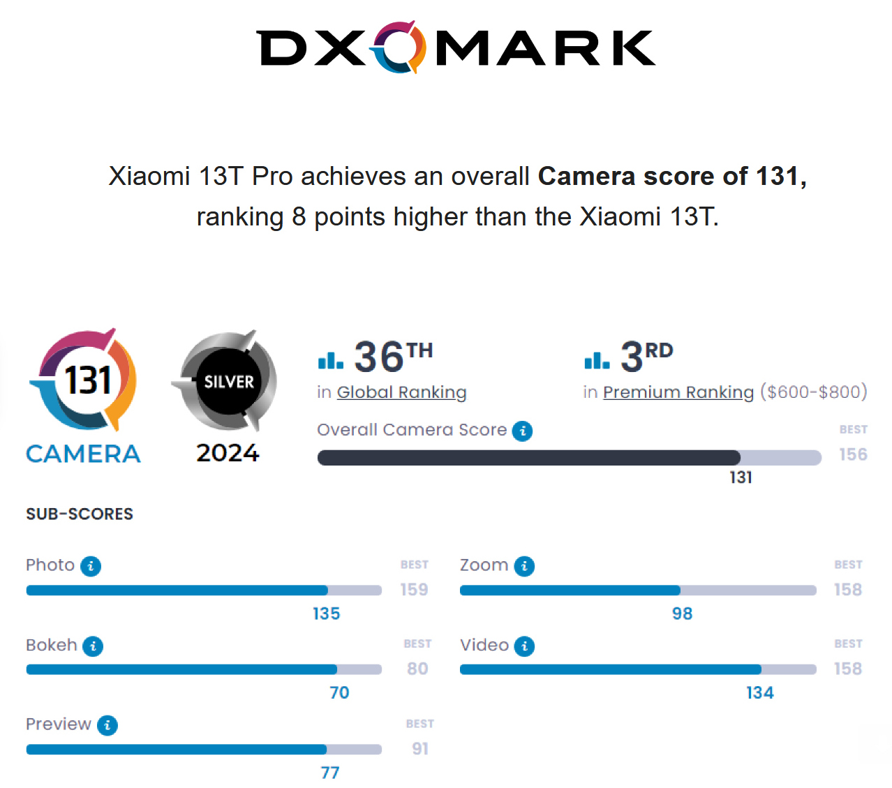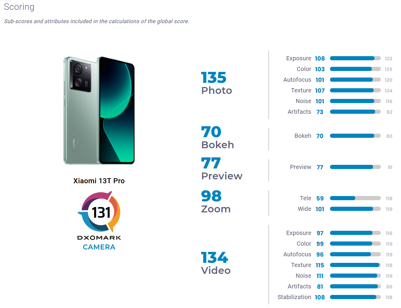Mit einer Gesamtbewertung von 131 Punkten im Dxomark Camera für die Leica-Kamera performt das Xiaomi 13T Pro gleich um 8 Punkte besser, als das günstigere Xiaomi 13T (123 Punkte) - obwohl beide Phones mit der gleichen Kamera-Hardware ausgestattet sind. Die Unterschiede in der Bildqualität der beiden Xiaomi-Handys ist besonders bei der Farbwiedergabe, dem Weißabgleich und der Hauttonwiedergabe sichtbar. Die Experten vermuten, dass die insgesamt bessere Bildqualität des Xiaomi 13T Pro, aufs Konto des leistungsstärkeren MediaTek Dimensity 9200+ inklusive Imagiq 890 HDR-ISP und besserer Softwareanpassungen geht, während das Standard-13T den schwächeren MediaTek Dimensity 8200-Ultra nutzt.