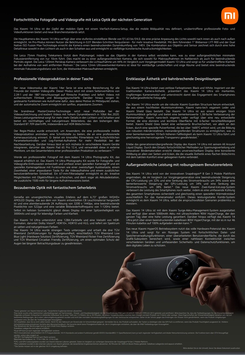 Neben dem Xiaomi 14, das in Deutschland mit Geschenken und Rabatten zum Start geradezu unter Wert verscherbelt wird, hat Xiaomi im Vorfeld des Mobile World Congress 2024 in Barcelona heute auch das Xiaomi 14 Ultra offiziell für Europa vorgestellt, nachdem es in China bereits am 22. Februar 2024 erstmals offiziell angekündigt wurde. Im Gegensatz zum Basismodell muss man sich in der EU bis zum 19. März gedulden, bis das Xiaomi 14 Ultra tatsächlich ausgeliefert wird, bestellen darf man aber heute schon, mehr dazu dann weiter unten.