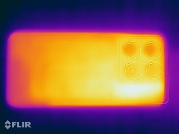 (±) Auf der Unterseite messen wir eine maximalen Wert von 42.6 °C (im Vergleich zum Durchschnitt von 34 °C).
