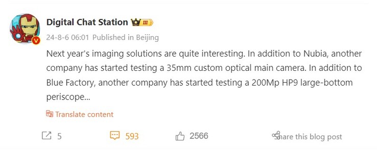 Während Samsung in Sachen Kameras in letzter Zeit auf der Bremse steht und primär an Galaxy AI Features werkelt, dringen aus China immer noch spannendere Hinweise auf künftige Kamera-Flaggschiffe zu uns durch, die 2025 teilweise auch in Europa erwartet werden. So wird etwa das Vivo X200 Pro auch bei uns in Deutschland und Österreich starten und das laut bisheriger Hinweise mit 200 Megapixel Telefoto-Kamera, die direkt aus dem Vivo X100 Ultra stammen wird. Und noch ein Hersteller soll derzeit eine Zoomkamera mit Samsungs neuem 200 Megapixel ISOCELL HP9 testen, teaserte der chinesischer Leaker Digital Chat Station vor wenigen Stunden im chinesischen Netzwerk Weibo.