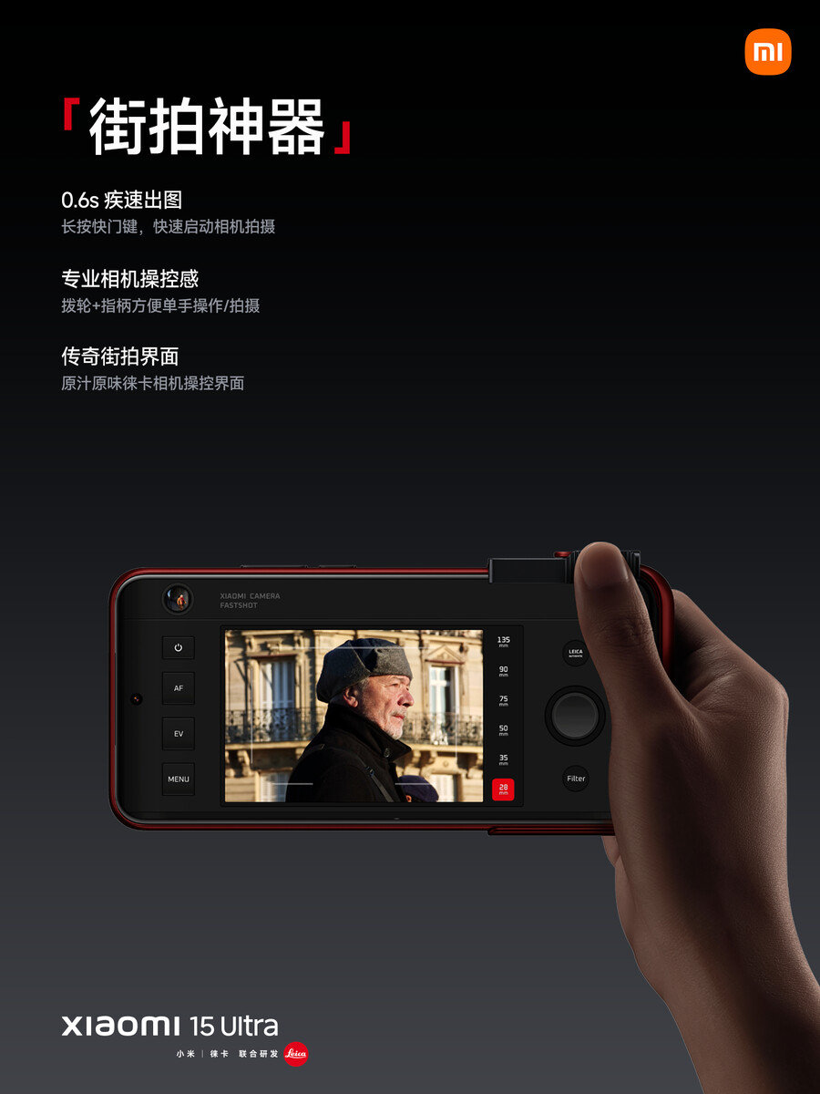 Um das Feeling weiter in Richtung dedizierter Leica-Kamera anzupassen, bietet Xiaomi eine Kamera-App an, deren Benutzeroberfläche recht eindeutig einer Leica M11 oder auch einer Leica Q3 nachempfunden wurde.