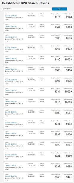 Rund um den Snapdragon Summit tauchten nun auch jede Menge Hinweise auf das Xiaomi 15 in der Benchmark-Datenbank von Geekbench auf. Das Xiaomi-Phone mit der Modellnummer 24129PN74C (für die China-Version) wurde offenbar bereits mehrfach mit dem synthetischen Benchmark getestet und überspringt dort in einigen Fällen auch die 10.000 Punkte Marke für den Multi-Core-Score wie die Screenshots unten zeigen.