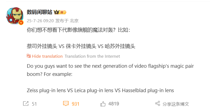 Wer lieber einen Ausblick auf das Ultra-Flaggschiff-Segment des Jahres 2026 hat, wird von Digital Chat Station ebenfalls bedient. Laut einem weiteren Weibo-Post wird das nächste Jahr offenbar das Jahr der austauschbaren Linsen im Ultra-High-End-Handy, zumindest in China. Während Samsung mit seinem Galaxy S26 Ultra zwar eine lichtstärkere Hauptkamera und ein aufgewertetes Telefoto mit größerer Blende plant, scheinen Xiaomi, Vivo und Oppo voll auf austauschbare Optiken in Kombination mit Xiaomi 16 Ultra, Vivo X300 Ultra und Oppo Find X9 Ultra zu setzen.