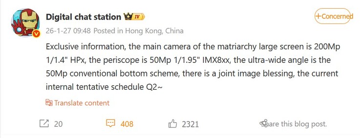 Laut aktuellem Weibo-Post des Leakers wird das Xiaomi 17 Max, wie es vermutlich benannt wird, eine 200 Megapixel Hauptkamera auf Basis eines 1/1.4 Zoll großen ISOCELL-Sensors von Samsung erhalten, möglicherweise also ein ISOCELL HPE wie beim Telefoto des Xiaomi 17 Ultra. Statt eines regulären Telefotos verbaut Xiaomi zudem wohl ein Periskop-Telefoto auf Basis eines 50 Megapixel Sony-Sensors der IMX8xx-Serie mit 1/1.95 Zoll Sensorgröße.