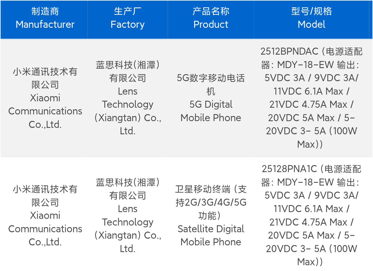 Der Nachfolger des Xiaomi 15 Ultra (hier bei Amazon erhältlich) wurde nun erstmals auch bei der 3C-Zertifizierung in China entdeckt und zwar in Form zweier Modelle, die wie Xiaomi 17, Xiaomi 17 Pro und Xiaomi 17 Pro Max nun mit maximal 100 Watt Fast-Charging in der CCC-Datenbank stehen. Die Modelle 2512BPNDAC und 25128PNA1C unterscheiden sich laut Zertifizierung erstmal nur in der Unterstützung ihrer Funkverbindungen: Während ersteres nur in 5G-Netzen funken kann, ist mit Letzterem auch die Satelliten-Anbindung (in China) möglich, laut Digital Chat Station werden Beidou Satelliten SMS und Tiantong Satelliten Anrufe unterstützt.