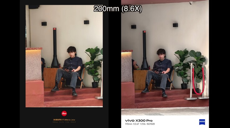 Mir persönlich gefällt das Ergebnis im ersten Photo bei Vivo zwar besser, weil es deutlich schärfer ist, der gelbliche Hintergrund der Wand wird mit dem Xiaomi 17 Ultra allerdings authentischer eingefangen. Beim zweiten Shot sind beide Aufnahmen meiner Meinung nach nicht ideal. Beim X300 Pro wirkt das Gesicht zu stark KI-bearbeitet, beim Xiaomi 17 Ultra ist es dagegen unscharf. In weiterer Folge teilt der Tester auch seine ersten Videoaufnahmen aus Hong Kong. Gut gelungen ist Xiaomi offenbar der Übergang vom optischen Zoombereich zum Digitalzoom ab 100mm.