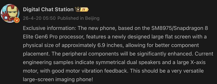 Den genauen Namen des Geräts hat der chinesische Leaker zwar nicht genannt, allerdings vermuten einige Nutzer in den Kommentaren, dass es sich um das besagte Xiaomi 18 Pro Max handeln könnte. Dem Leak zufolge soll es mit dem Qualcomm Snapdragon 8 Elite Gen 6 Pro bestückt sein.