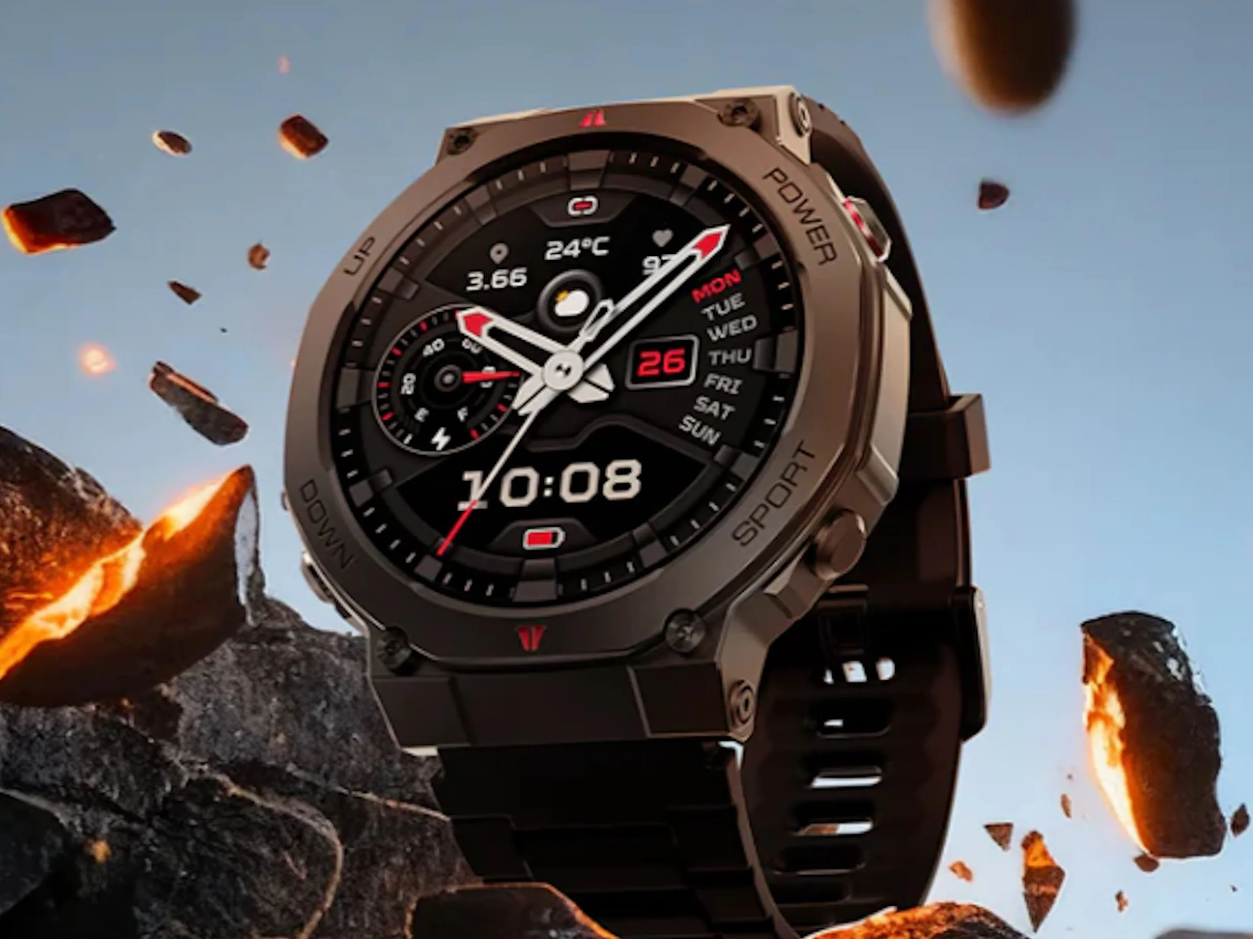 Angegeben wird eine typische Laufzeit von 18 Tagen, die Uhr soll verschiedenen Anforderungen des MIL-STD-810 entsprechen. Das 1,43 Zoll große AMOLED-Display löst mit 466 x 466 Pixeln auf und soll eine Helligkeit von 1.000 cd/m² darstellen können. Als Bluetooth-Freisprecheinrichtung ist das Modell nutzbar, verbaut sind auch ein Kompass und ein Barometer.