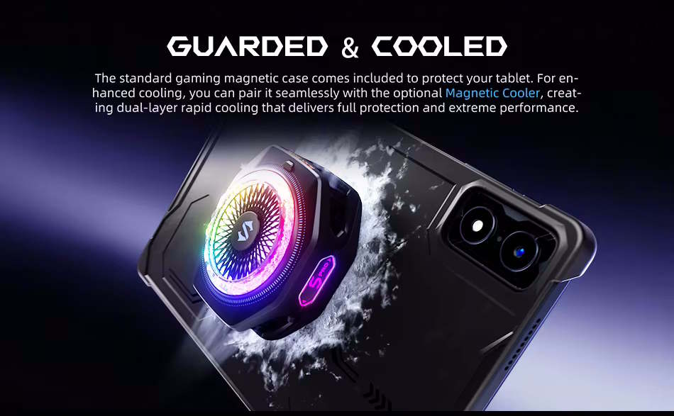 Auf dem 256 Gigabyte großen UFS 4.0-Speicher ist Android 16 vorinstalliert, der LPDDR5X-Speicher bietet eine Kapazität von 12 Gigabyte. Das 332 Gramm schwere und 7,7 Millimeter dünne Tablet kommt mit einem 7.300 mAh starken Akku. Verbaut sind Kameras mit 13 und 5 Megapixeln. Optional lassen sich eine microSD-Speicherkarte und auch ein magnetischer Kühler nutzen. Im Lieferumfang enthalten sind neben einem 20-Watt-Ladegerät auch Sticker und eine Schutzhülle.